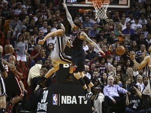 Miami rolled to a surprisingly comfortable 113-101 win over San Antonio on Sunday in a reprise of last year's NBA Finals, with Chris Bosh scoring 24 points on 9-for-10 shooting for the Heat.