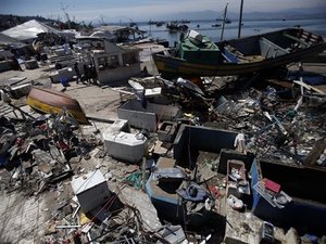 Emergency personnel backed by soldiers were still busy cleaning up the coastal city of Coquimbo, which was a jumble of fishing boats, destroyed homes, vendors' stands and vehicles washed up by the tsunami waves that followed the quake.