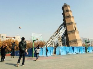 The Wanshou Temple Tower in the central city of Xi'an, which dates from the Ming Dynasty (1368-1644), began to lean dramatically after a heavy rainstorm in May 2011, state-run China Radio National said.