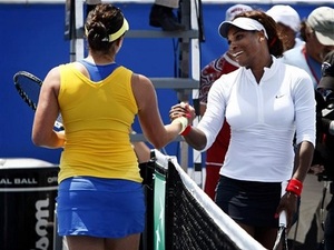 Serena Williams also had some serving problems, but just in one service game - the third game of the match. Serving into the sun, Williams offered Arvidsson three break points in that game — the only break point chances the Swede had in the match — but Williams managed to hold on to the game.